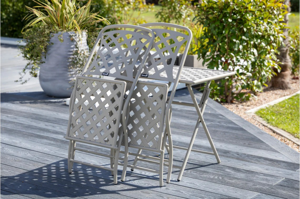 Perfect for a balcony, patio or small corner in your garden, dining couldn’t be more stylish with the smooth contemporary lattice of the Berkeley range. Crafted from cast aluminium this furniture is durable, attractive and has great strength and value at its heart. The table and chairs can be left in the garden looking beautiful all year long, whilst our permeable Weatherready® cushions can be left outside in summer months – allowing you to make the most of the season. This set coordinates beautifully with other dining options in the Berkeley collection and will bring your garden happy times for years to come.