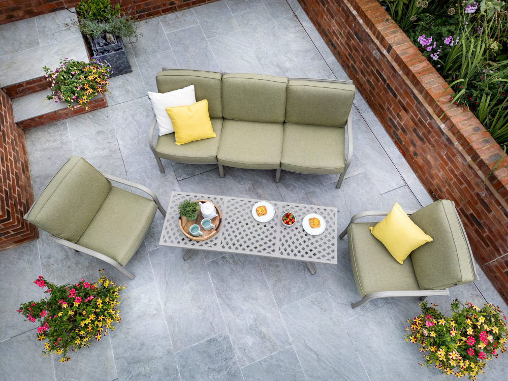 The Buxton 3 Seat Lounge Set is designed with elegance and comfort in mind, bringing a sense of luxury to any garden. Seating up to five people, this set includes a spacious three seat sofa, two lounge chairs, all complete with our ultra-comfy Weatherready® cushions. The Weatherready® cushions are hard wearing, easy to clean and can be left out all summer long. At the centre of this set is a latticed cast aluminium maize coffee table, which is lightweight, strong and durable. Spending time with your friends and family will always be enjoyable with this lounge set, adding to your most memorable summer moments.