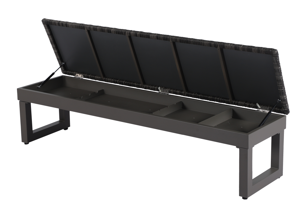• Games equipment is stowed away within one of the benches (gas pump lid function)
