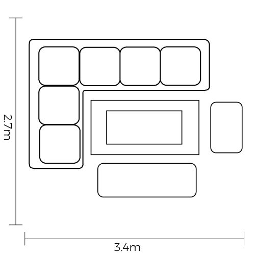 • Corner seating requires simple back and base assembly – all fittings supplied
