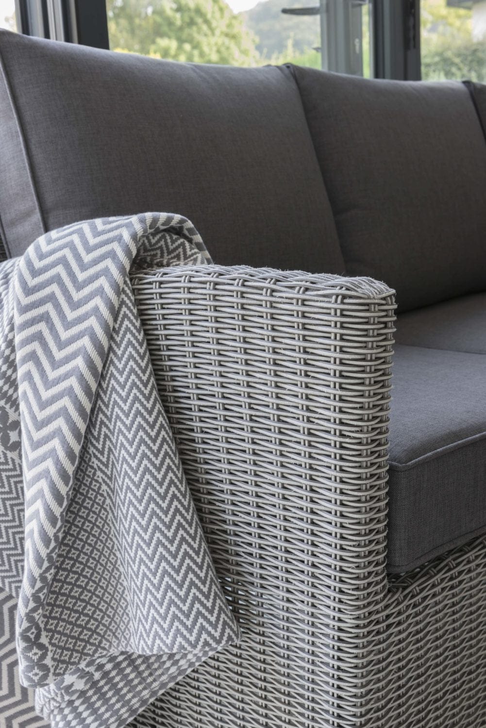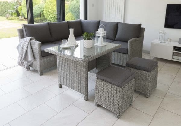 Made with weatherproof, hand woven wicker, the Palma Mini Corner Set has the style and versatility to go outdoors or indoors in a conservatory.