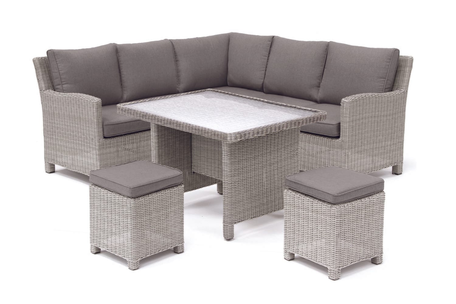 Kettler Palma Mini Corner Casual Dining Set – Whitewash – Glass Top Table