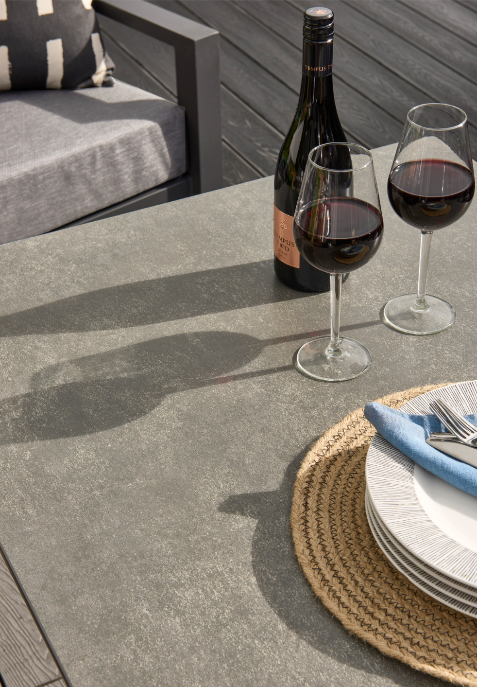 Underneath the cushions lies a seat that subtly flexes, providing extra comfort for longer periods outdoors. The aluminium frame gives the set a stable base and remains comfortable for daily use.