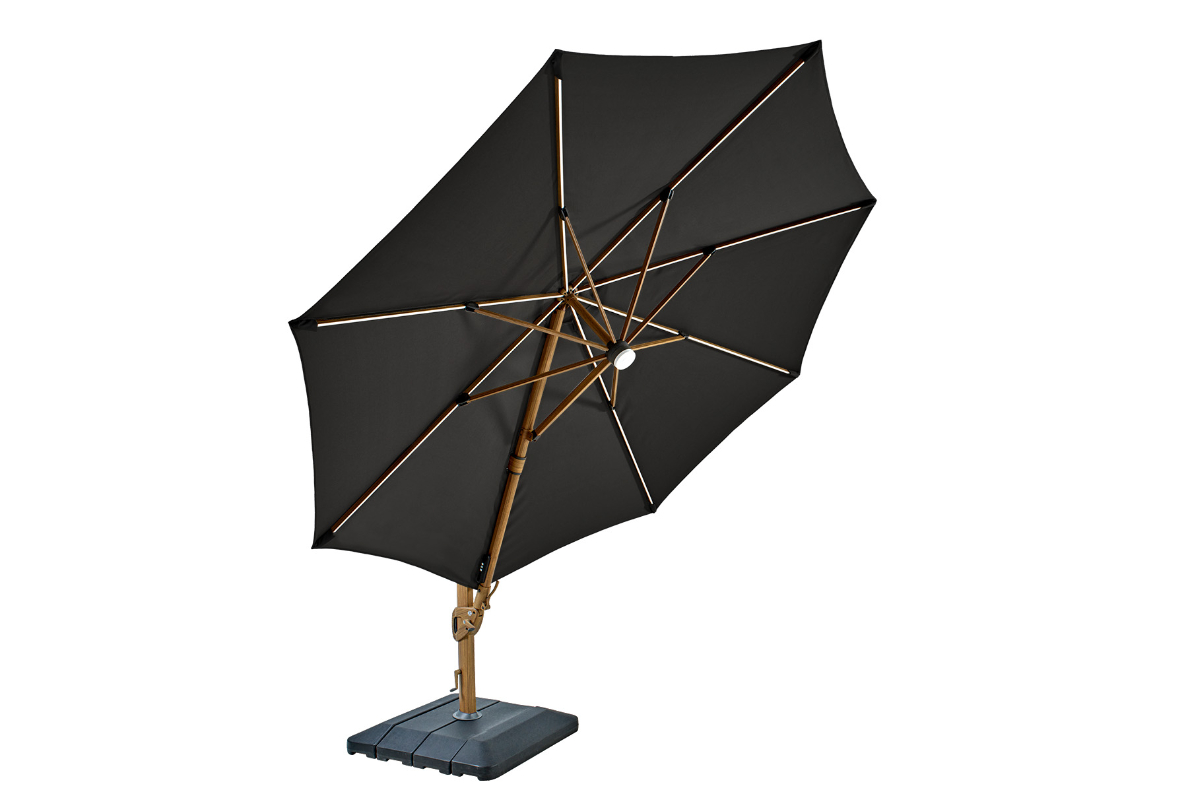 Impress your friends and family with the ultimate in garden accessories. The Seychelles Cantilever can impress day and night, featuring solar powered LED lights to add a touch of glamour to your dinner parties and a Bluetooth speaker to play your favourite music.
